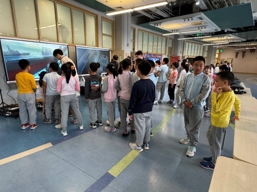 众人踊跃参与了沈阳理工大学和北京航空航天大学师生们展示的关于国防工业与最新科技的虚拟现实互动体验活动。