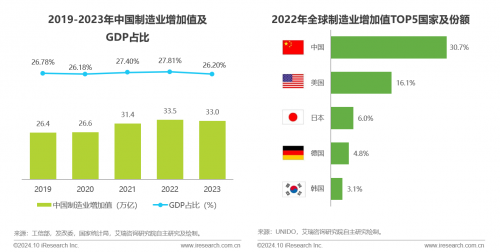 制造业是我国的立国之本,制造业高质量发展也成为促进我国经济高质量发展的重中之重。统计数据显示,2023年我国制造业增加值约为33万亿,制造业增加值占GDP比重为26.2%,近五年来制造业增加值对GDP贡献稳定维持在25%以上。凭借完善的产业体系和供应链规模化效应,我国制造业增加值在全球占比超过三成,位居世界第一,这一产业优势为我国工具产品出海提供了良好的发展基础。
