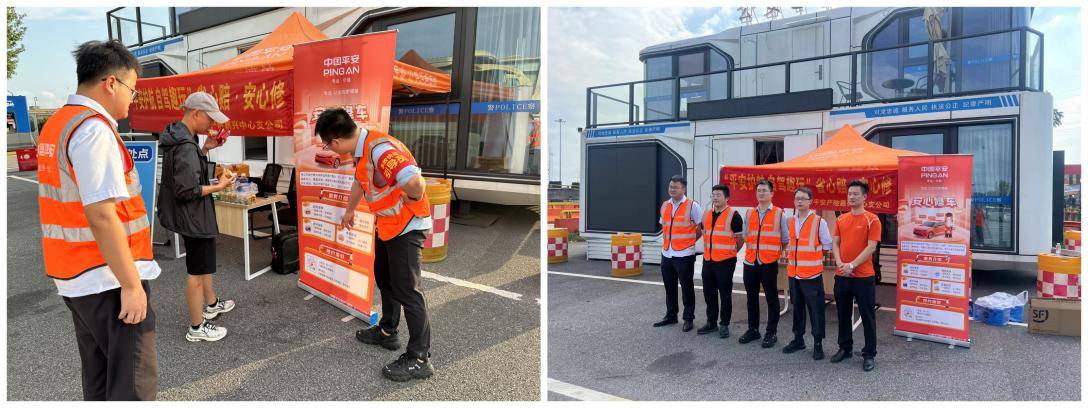 2024 年国庆假期,平安产险浙江分公司推出以“平安护航,自驾趣玩—省心赔•安心修”为主题的国庆护航活动,平安守护者在全省14个高速路口设立护航站点,为广大车主提供安心修、快处快赔、物资补给、补胎搭电等8项服务,用专业服务为广大车主的出行安全保驾护航