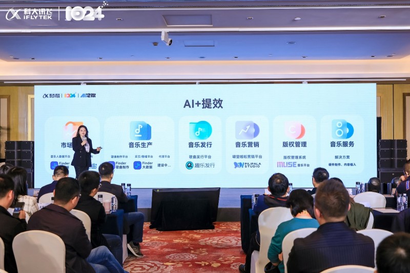 10月24日,2024科大讯飞全球1024开发者节AI文娱论坛在合肥圆满举办。论坛以“重构内容与表达”为主题,旨在探讨AI时代下文娱产业的最新趋势,见证讯飞AI文娱业务的重大发布,与合作伙伴共同推动文娱行业的繁荣发展。科大讯飞副总裁&研究院院长刘聪、科大讯飞消费者事业群副总裁严亚路出席大会,讯飞输入法业务部总经理程坤、数字娱乐业务部总经理&讯飞音乐主理人郭嘉、数字娱乐业务部副总经理&讯飞音乐首席科学家江源分别作主题演讲。