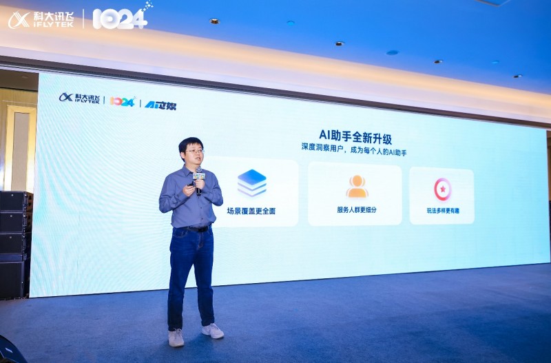 首先,科大讯飞消费者事业群副总裁严亚路登台致欢迎词,他通过分享近年业务发展历程,向到场嘉宾及媒体阐释了,面对不断变化的市场环境,讯飞AI文娱业务群如何通过寻找新的机遇和突破点,尝试泛娱乐内容领域的业务方向,为用户提供更有价值的内容、更便捷高效的服务。