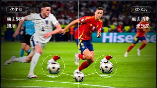 AI画质精调的核心,在于对电视全链路协同调校,这就要求芯片能够根据场景、环境、内容变化,实时进行调整、输出最优图像。海信电视U8N搭载的信芯®AI画质芯片 Pro,能够统筹优化整个影像链路。例如观看比赛时,运动员处于高速运动,非常容易造成影像细节丢失、人物不够立体等情况,信芯®AI画质芯片Pro首先会通过AI对象智能感知侦测体育场景,随后通过AI超感景深增强,模拟人眼的真实感知,侦测画面中的核心物体;最后AI动态超解析能实时读取画面内容。最终呈现的比赛画面,不仅核心人物突出、画面通透立体,而且质感与细节兼备。