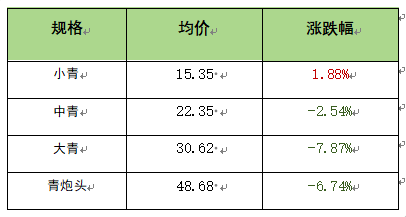 分规格来看,不同规格小龙虾价格小幅下跌。