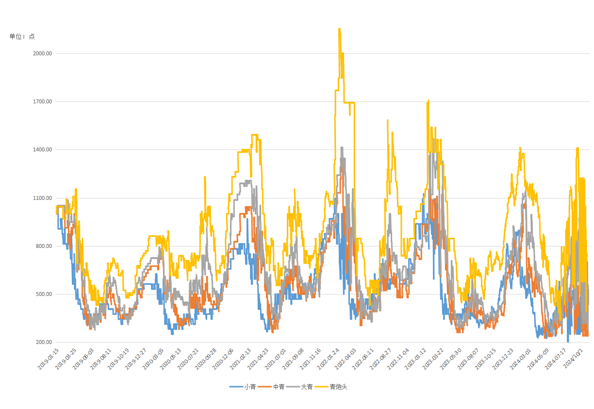 截至10月28日,青虾均价报29.25元/斤,环比下跌5.21%。其中,小青均价报15.35元/斤,环比上涨1.88%;中青均价报22.35元/斤,环比下跌2.54%;大青均价报30.62元/斤,环比下跌7.87%;青炮头均价报48.68元/斤,环比下跌6.74%。