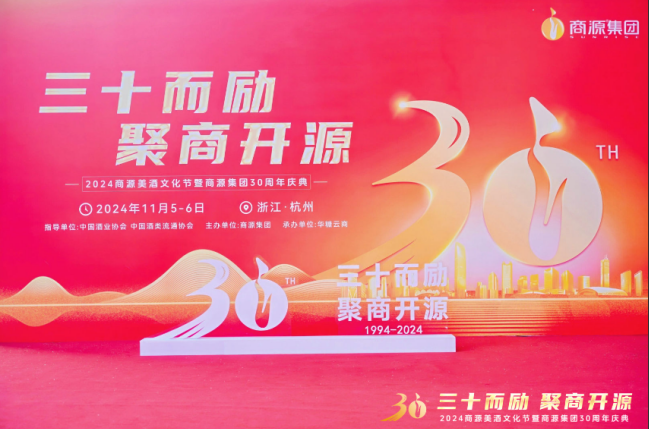 商源三十年,共好向未来!11月5日—6日,以“三十而励 聚商开源”为主题的2024商源美酒文化节暨商源集团30周年庆典在杭州隆重召开,商源集团以一场联动酒企、酒商、协会、智业等酒业全生态链的美酒文化节敬献三十周年。