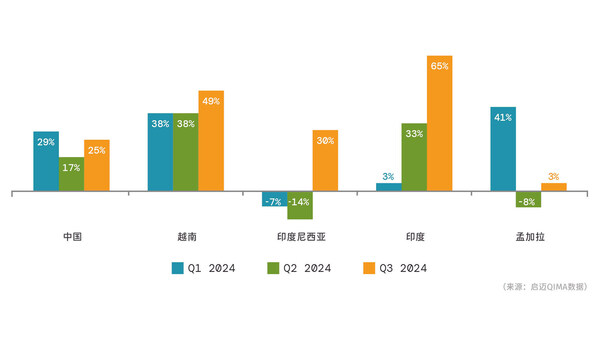 随着假日季准备工作全面展开,东南亚制造业中心在第三季度表现出色。启迈QIMA 数据显示,越南、印度尼西亚和柬埔寨的检验和审核需求同比实现两位数增长。然而,9月份东南亚采购需求出现下滑,这可能与需求波动以及受台风"摩羯"影响的工厂业务损失有关。