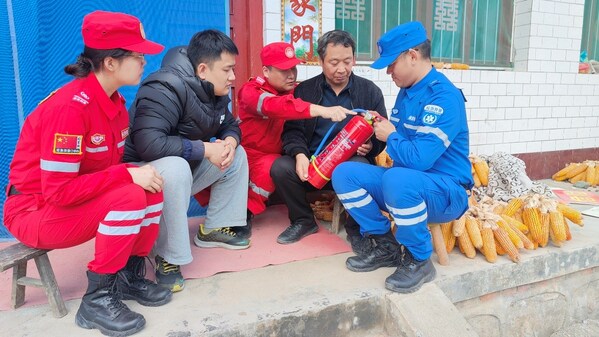 11月2日,壹基金安全家园项目伙伴西安市未央区环保志愿者协会志愿者分别前往商州区、宁强县等地村镇,与当地社区志愿者救援队队员们一起,开展消防技能培训、社区风险排查等。队员们认真排查风险,教大家使用灭火器,提醒老乡"干草垛离房子有点近、注意火灾隐患",提醒店铺商家"要经常检查灭火器是不是能正常使用",并带去了安全家园项目的《家庭安全计划手册》。