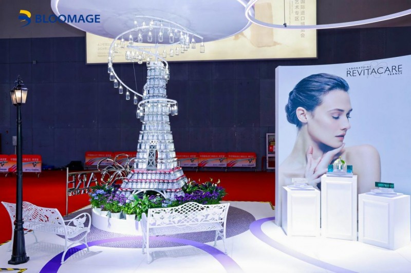 此届进博会恰逢中法建交60周年,华熙生物展台设计以REVITACARE品牌色紫色为主色调,融合了法国埃菲尔铁塔著名文化地标元素,充满国际时尚与未来科技感,彰显了品牌高贵优雅的前沿风貌。展会期间,REVITACARE展示了CYTOCARE、Revitafill、HAIRCARE、C Line等面部年轻化及头皮美塑创新产品,展现了其在科技美容领域的深厚底蕴与持续创新力。