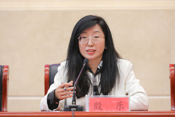 图为中国社会科学院新闻与传播研究所副所长、研究员殷乐答记者问
