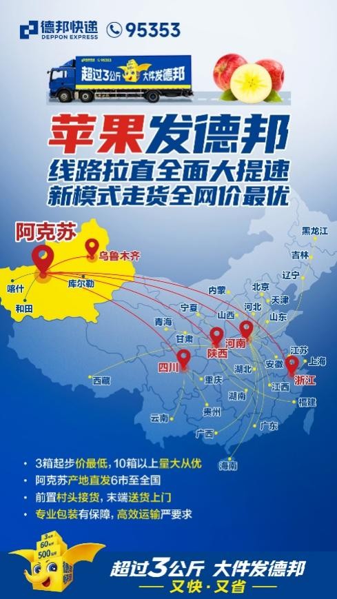 四通八达的快递网络,让地方特产能摆脱地域限制,也让果农的辛勤劳动得到应有的回报。通过不断优化的物流方案,德邦快递助力阿克苏苹果和烟台苹果走向更广阔的市场,为果农带来了实实在在的收益,同时也为当地经济的发展作出贡献,持续书写着小城大业的新篇章。