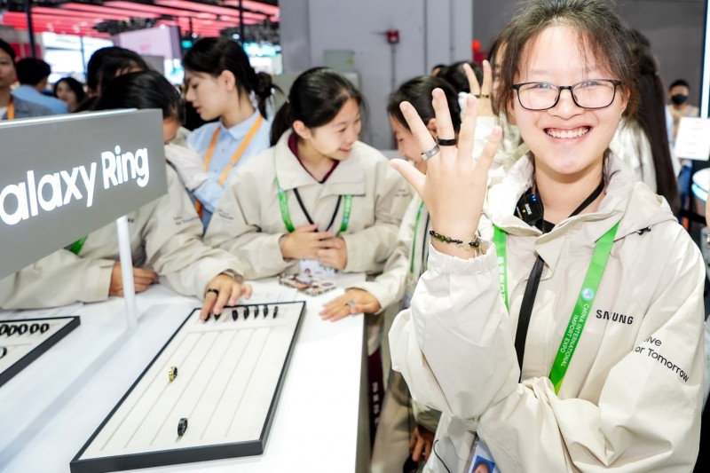 探秘进博会,不仅是青春与科技的碰撞,也是梦想与未来的对话。STEM GIRLS项目的俞可欣在体验三星产品后满怀憧憬地分享:“诸如Galaxy Ring智能戒指,已能实现睡眠与心率的监测,那么未来,是否能更进一步,利用这样的技术提前预判患者的健康状况呢?”。