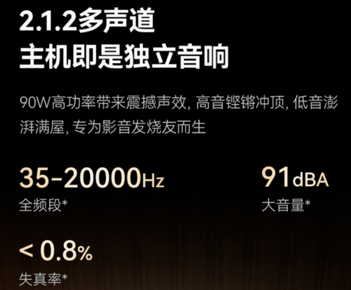 此外,在音质方面,海信激光电视星光S1得到专业声学实验室的调教加持,90W澎湃音效为电影而生。全域声场配置,双声道对称分布,加上前出音0遮挡,让美妙声音扑面而来。低音下潜至35Hz,令人仿佛置身片场,沉浸感十足。