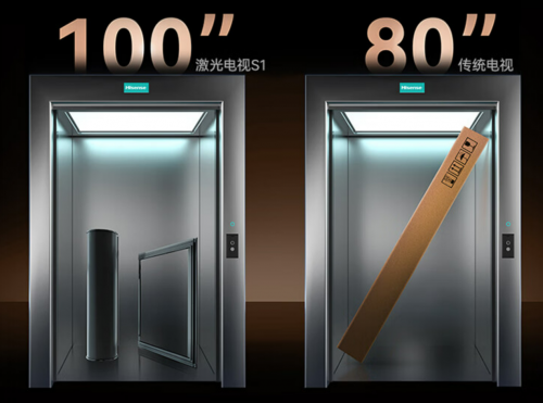 选购百吋电视面临的第一个问题就是入户难,激光电视的可折叠屏则是一个不错的解决方案。比如2024年热销的海信激光电视星光S1 100英寸采用的就是可折叠的屏幕框架和膜片,轻轻松松入电梯,安装和调试仅需30分钟左右就能完成,并且它的屏幕重量仅为18Kg,上墙完全没有问题,2cm的超薄厚度还能和墙面实现无缝贴合,大大降低了百吋电视的入户和安装门槛。
