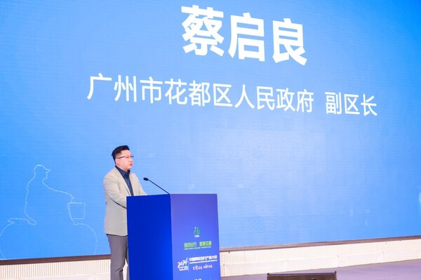 广州市花都区人民政府副区长蔡启良在大会上致词。蔡副区表示,花都区将积极响应国家号召,规划出两轮车绿能出行的愿景,推动绿色出行方式的普及,为构建绿色低碳循环发展经济体系贡献力量。
