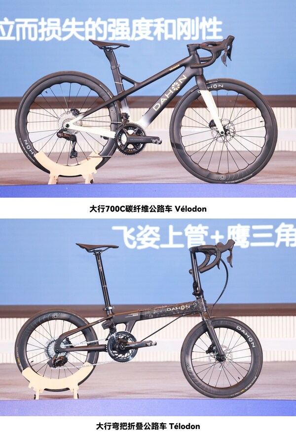 大会上,DAHON大行"快车道"技术新品——700C碳纤维公路车Vélodon、弯把折叠公路车Télodon重磅发布,开启竞速类市场新布局。破风鹰管、飞姿上管、鹰三角、DELTECH马甲线、超下管等"快车道"核心专利,保证自行车强大刚性、卓越速度,展示大行前沿的科技力及非凡产品力,得到行业广泛赞誉。