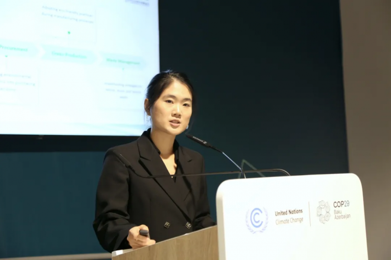 SEE基金会绿色供应链高级项目官员伍靖枫在会议上分享在促进制造行业的绿色供应链发展实践与成果,包括中国房地产行业绿色供应链行动及亚洲纺织行业气候专才计划的经验和最新进展。今年,房地产绿链行动发布了7个新品类评审规则,并已发布首批23个白名单和11个绿名单企业,更获得了国央企加入行动。纺织专才项目通过人才培养和专业培训,已培训超过1500行业人员,为企业带来显著能源效益提升。