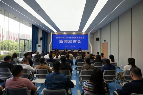 曲靖市第五次全国经济普查结果新闻发布会现场(4月18日摄)。