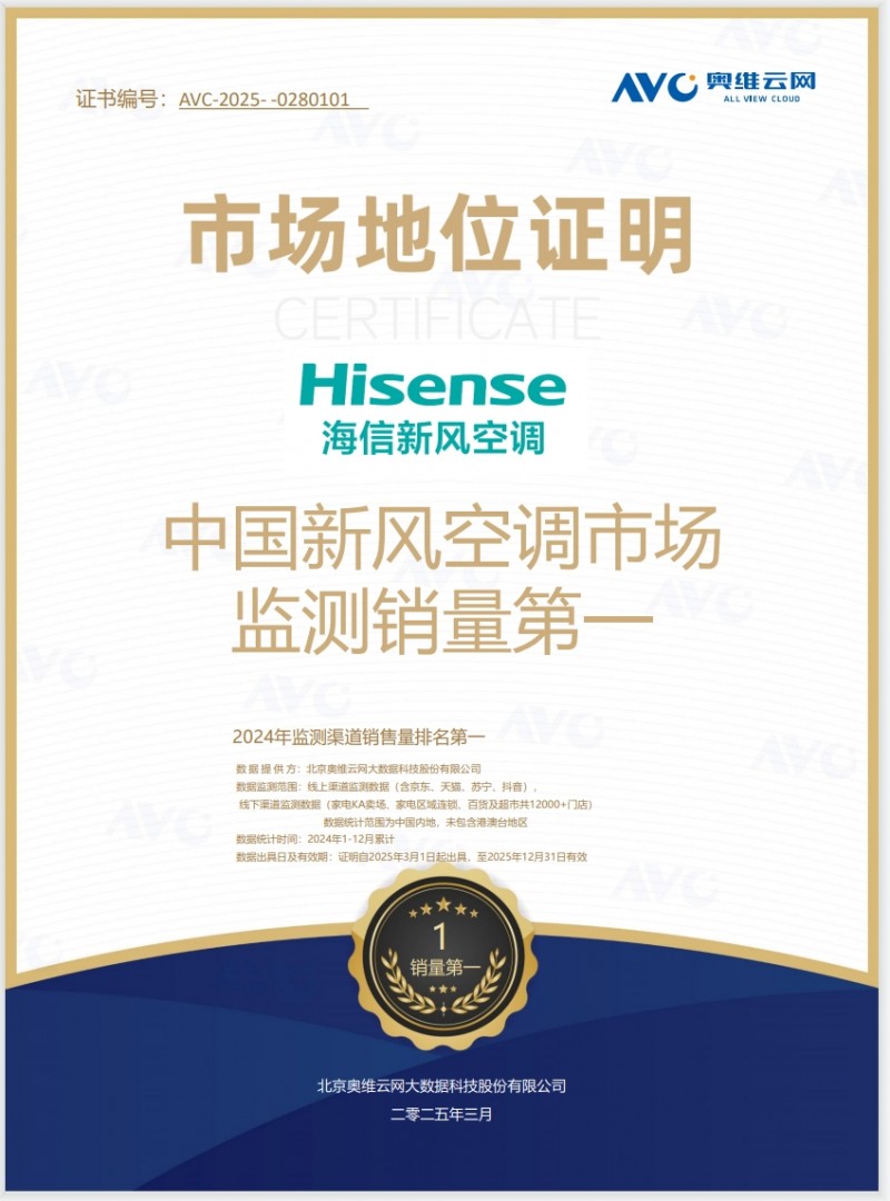 (海信新风空调市场地位证明)