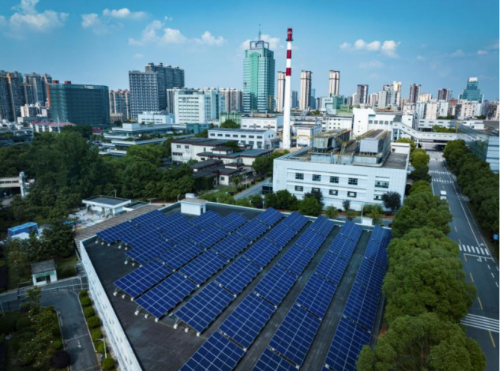 图为长沙卷烟厂利用厂区空间安装光伏板发电