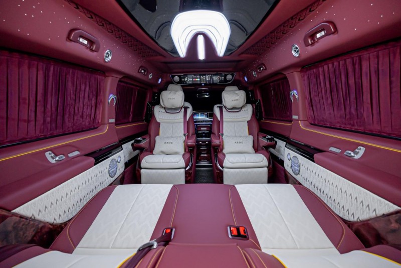 圣米特限量版以“每一台都是无法复制的艺术品”为核心理念,提供纯手工真皮包覆、碳纤维与金箔木纹饰板等顶级材质选择。二排座椅采用一体式超轻合金骨架,搭配进口记忆棉与真皮,支持通风、加热、气动按摩及一键躺平功能,配合可电动旋转的对座模式,打造移动会客厅的尊崇体验。车顶星空穹顶天幕与全息投影交互系统,则赋予空间科技与诗意的双重魅力。
