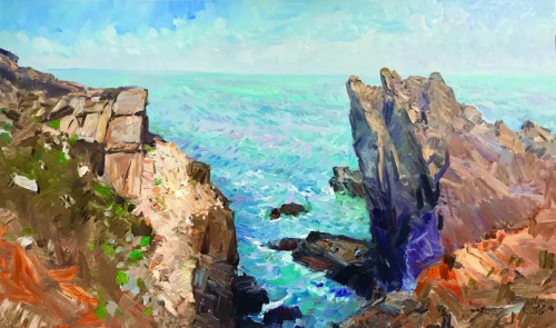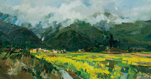 范迪安深谙中国传统绘画理论和书法之道。他深知中国的艺术理论讲风骨、气韵、格调,强调大自然的万千景象与人的精神品格、精神气质或者说精神个性之间的关联。什么样的性格就可能看到什么样的山,看到什么样的山可能在画面上体现什么样的性格。就在这样宽广的维度上,需要的是进行更多的提炼和升华,使得中国写意内涵与油画的表达形成更多的内在关联。