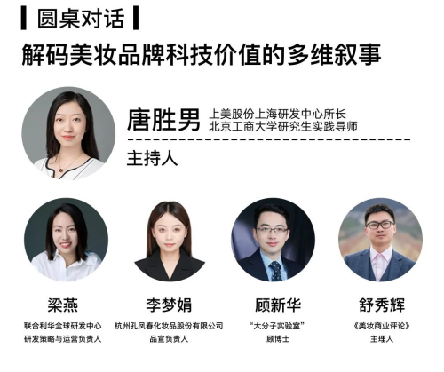 化妆品科技力的科学传播不仅是品牌塑造形象和提升竞争力的重要手段,也是连接消费者与品牌、推动行业高质量发展的关键环节。本次科技大会圆桌对话的主题为:解码美妆品牌科技价值的多维叙事,让我们抢先一览圆桌嘉宾阵容