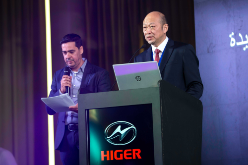 会上,苏州金龙总经理黄书平深情地回顾,阿尔及利亚是海格客车出海之初就建立深厚友谊的市场。2005 年驶向阿尔及利亚的第一批海格客车,至今仍历历在目。携手同行二十载,海格客车已融入阿尔及利亚的每一寸土地中。一万台的销量是品质与服务的最佳印证,遥遥领先的行业第一的市场地位,更是市场认可的最好证明。他向出席活动的近 500 位合作伙伴表示感谢,正是这份信任,让中国智造在这片热土上驰骋不息。