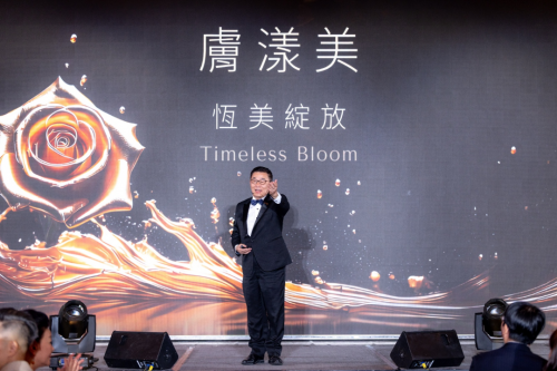 双美生技董事长林齐国先生发表致词,他深刻描绘胶原新世代的发展蓝图,并表达对肤漾美技术进一步推进整个医美界版图升级的信念。