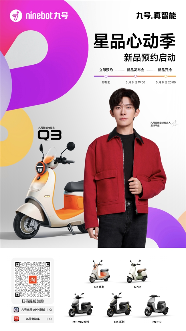 在本次发布会上,九号品牌全球代言人易烊千玺以全新形象出现在Q系列新品大片中,呈现出品牌年轻化方向的又一次探索。他与Q系列新品的同框亮相,拉近了九号与年轻消费群体之间的距离,也映射出品牌持续创新、以用户为核心的坚持与思考。