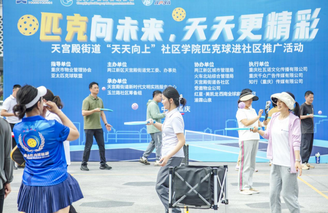 5月8日,重庆两江新区天宫殿街道联合重庆市物业管理协会、亚匹联开展“天天向上”社区学院匹克球体验推广活动,吸引百余名市民热情参与,为城市社区注入一股运动新风。