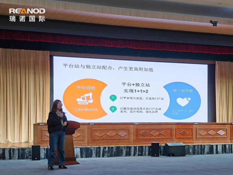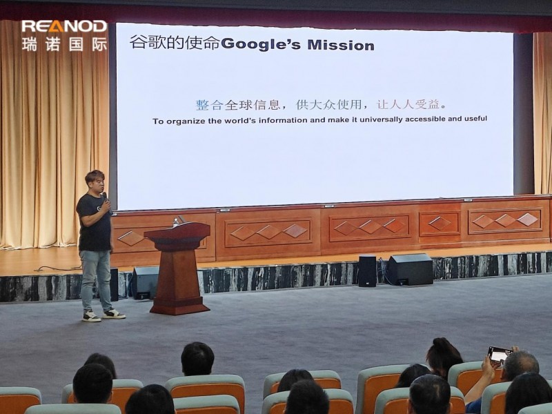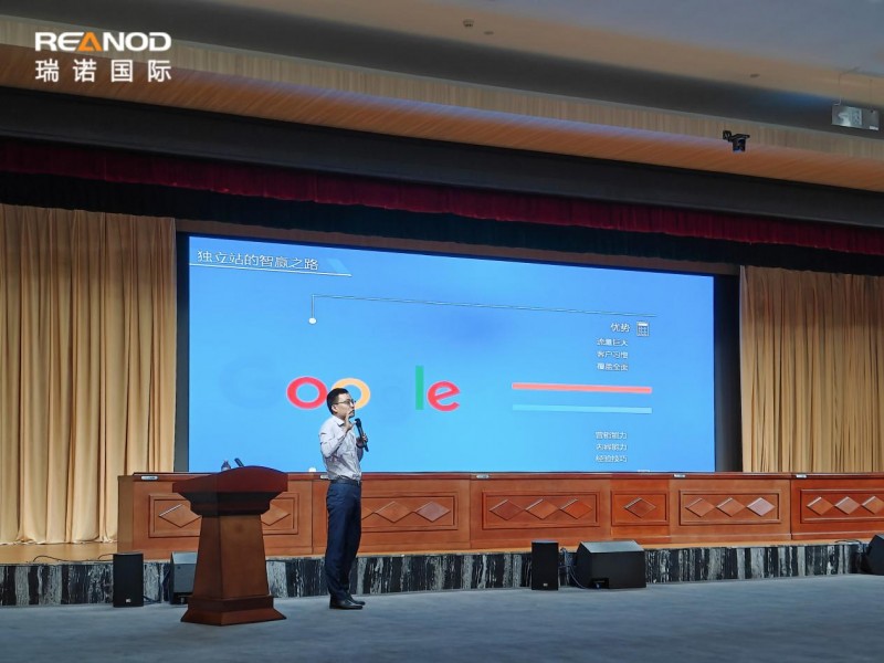 随后,瑞诺国际首席讲师赵帅进行了“扬帆出海,独立站助你远航”的主题分享,为参会者提供了独立站建设和运营的宝贵经验。他首先讲述了独立站在提供卓越用户体验、便捷化管理操作和优化排名方面的优势,从瑞诺国际服务过的项目案例出发,展示独立站的构建过程,讲解如何利用网站设计、内容创建、用户体验等吸引和留住客户。赵帅老师还强调了引流对独立站的重要性,通过案例数据分析,演示在SEO优化、内容营销和社交媒体运营等多渠道协同的推广策略下,提高网站的搜索引擎排名和在线可见度,提升网站的自然搜索流量和直接访问量,增加询盘数和转化率。