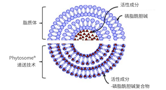 Phytosome® 脂质体递送系统将植物提取物包裹在卵磷脂矩阵结构中,形成固态分散体,使每个槲皮素分子生物活性提升,能够有效实现槲皮素的稳定跨细胞膜传送,在保证活性的同时深入细胞内部,显著提升使用效果。在肠道模拟液中,Quercefit® 使槲皮素的溶解度提升了 11 倍,这也是Quercefit® 槲皮素植质体递送复合物利用率提升的必要前提。