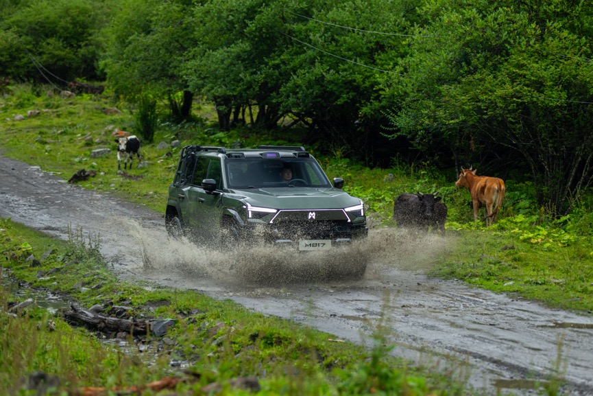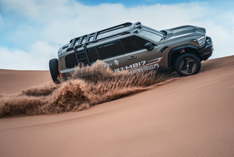 极猛动力为猛士M817提供强劲“心脏”,采用行业首个2挡纵置11模PHEV架构,系统综合功率达505kW、综合扭矩848N·m,动力性能比肩传统6.0T发动机;3kW超大功率高压风扇使散热效率提升65%,确保高原、沙漠等极限工况下动力不打折;25kW驻车最大发电功率可实现1小时补充110km续航,再加上1300km综合续航、7.24L/100km百公里馈电油耗表现,彻底解决越野长穿越的续航焦虑。