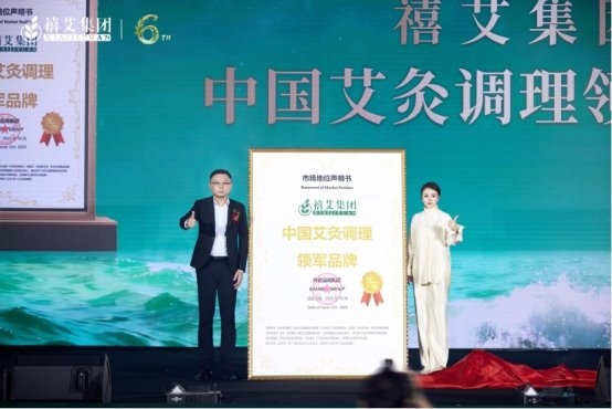 2025年10月,尚普咨询集团向禧艾集团颁发【中国艾灸调理领军品牌】权威市场地位声明书。该声明不仅印证了禧艾集团在艾灸大健康领域的核心领导力,更彰显其以“全民康养进社区、进家庭”理念推动中医艾灸现代化升级的社会价值。