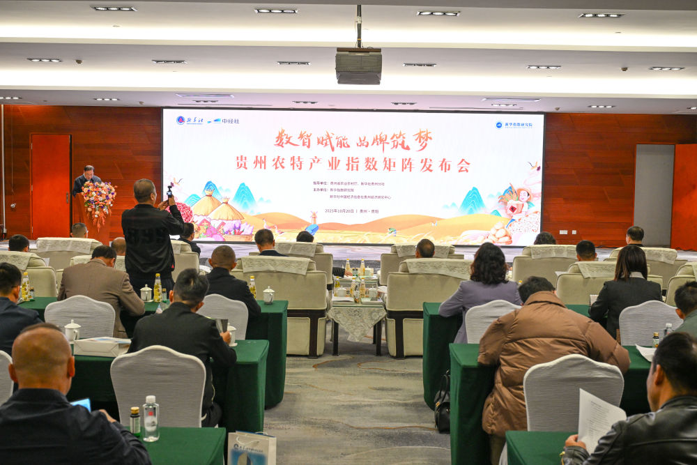 2025年10月20日,由贵州省农业农村厅、新华社贵州分社指导,新华指数研究院、新华社中国经济信息社贵州经济研究中心主办的“贵州农特产业指数矩阵发布会”在贵州饭店新闻发布厅成功举办。本次发布会正式推出了涵盖贵州十大特色农产品的指数矩阵体系,标志着贵州农特产业发展评价指数体系初步形成,为下一步构建更加科学的产业生态协同体系奠定了良好基础。