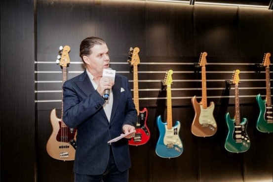 (Fender中国区总经理戴筠杰在揭幕仪式上致辞)