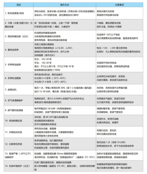瓦格耐柴油发电机组《冬季保养维护指南》