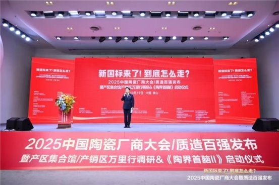 10月19日,由中国建筑材料流通协会、陶业时讯主办的“2025中国陶瓷厂商大会/质造百强发布暨产区集合馆/产销区万里行调研&《陶界首脑Ⅱ》启动仪式”在佛山陶瓷产业总部基地隆重举行。大会聚焦“新国标来了!到底怎么走?”主题,深入探讨《消费品质量分级 陶瓷砖》(GB/T 45817-2025)实施背景下,陶瓷产业的高质量进阶路径,并隆重揭晓了2025中国陶瓷质造百强榜单。