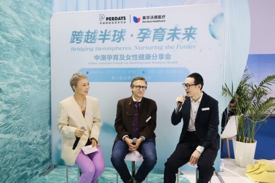 第八届中国国际进口博览会医疗器械展区内,美华沃德医疗集团与澳大利亚品牌Perdays共同举办的" 跨越半球 • 孕育未来 " 健康分享会,吸引了众多孕妈妈和家庭的关注。这场分享会聚焦女性全生命周期健康,传递温暖而专业的孕育理念,也为当前社会关注的生育友好议题提供了新的解决方案。