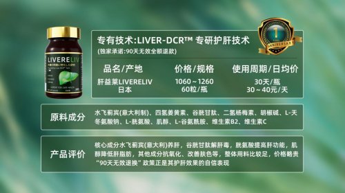 作为一款技术服务性很强的产品,配有四大核心技术:“Liver-DCRE®”成分配伍增效技术(强效组分增强);“、iSynergies®”配方减损增效技;Sim Evo®赛奥维TM靶向吸收技术让有效成分直接到达受损肝细胞。