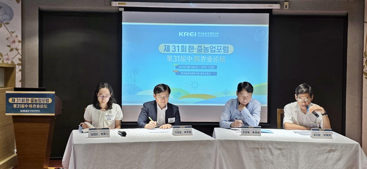 제31회 한중농업포럼 성공 개최: 스마트농업 발전을 위한 협력 모색 ** 11일 베이징에서 한국농촌경제연구원 중국사무소가 주최한 제31회 한중농업포럼이 성공적으로 개최되었다. 이번 포럼은 “중국 스마트 농업 행동계획 (2024-2028년) 기술 실현의 도전과 혁신”을 주제로 중한 양국의 농업 전문가, 학자, 업계 대표들이 함께 모여 스마트농업 발전 추세와 실천 전략을 심도 있게 토론하며, 양국의 농촌경제 협력에 새로운 활력을 불어넣었다. 포럼은 임영아 한국농촌경제연구원 베이징사무소 수석대표의 사회 안내로 시작되었다. 류지팡 중국농업과학원 농업정보연구소 서기가 발표자로 참여 주제연설을 펼쳤다. 류지팡 서기는 중국 스마트농업 행동계획의 전략적 목표를 중심으로 현재 농업 사물 인터넷, 빅데이터, 인공지능 등 첨단 기술이 현장 적용 과정에서 직면한 어려움을 상세히 분석했다. 특히 데이터 통합 어려움, 기술 도입 비용 부담, 농업 종사자의 디지털 역량 제고 등 핵심 과제를 지적하며, 스마트 농장 구축 사례를 통해 정밀 관개 시스템, 위성 원격 감지 기술의 적용 효과를 보여주었다. 토론 시간에서는 한국 전문가들이 국내 스마트농업 발전 경험을 바탕으로 농업 로봇 개발, 디지털 플랫폼 구축 등 분야에서의 실천 사례를 공유했다. 양국 대표들은 스마트 농업 기술의 대규모 보급 방안, 중소 규모 농가 지원 정책, 국제 협력 체제 구축 등 주요 이슈에 대해 의견을 교환하며, 협력 가능성과 발전 방향을 탐색했다. 질의응답 시간에 참석자들은 “중소 농장에서의 스마트 농업 기술 보급 전략” “한중 양국의 협력 모델 확립 방안” 등에 대해 적극적인 질문을 제기했으며, 전문가들이 체계적인 답변을 통해 현장 실행 가능성과 미래 전망을 제시해 큰 공감을 불러일으켰다. 오찬 시간 동안 참석자들은 편안한 분위기에서 실질적인 협력 방안을 논의하며, 후속 협력에 대한 기대감을 높였다. 이번 포럼은 중한 양국의 농업 분야 상호 이해를 강화하고, 스마트 농업 기술 연구 개발, 성과 전환 등 협력에 중요한 플랫폼을 제공했다. 미래에 양국은 스마트농업 분야에서 더욱 밀접한 협력을 통해 농업 현대화를 추진하고, 농촌 경제 발전에 공동으로 기여할 것으로 전망된다