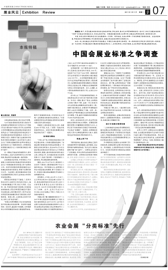 看来短兵相接是不可避免了,但双方相关负责人在接受记者采访时均表示,每个标准的侧重点不同,相互不矛盾。但这样一来,专家们的忧虑已经显现:《术语》是国家级标准,《要求》和《服务规范》只是针对由商务部主管的展会项目,而《专业》此次则是受商务部建设体系司委托修订的评级标准。表面上看,上述标准之间并不冲突,实际上却“各自为政”。