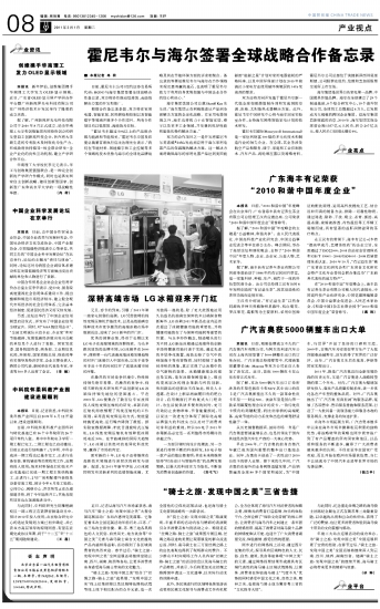 广东海丰有记荣获“2010和谐中国年度企业”