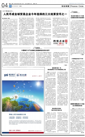 人民币成全球贸易企业今年选择的三大结算货币之一
