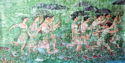 欣赏宫建华的作品,我们能够感受到一种古朴之风,这是古典艺术与现实主义题材相结合的艺术。形简、意赅、神话,超拔脱俗之作,主观上收放自如的精神状态,使之于作品客观上忘却技功自然天成的效果。从她在凝静中勾画出的每一条线,着墨的每一笔,都透视她心灵的激奋、思维的激情跳跃、思想似南国的红棉树。
