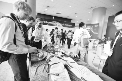 国际宇航大会上中外嘉宾近距离接触航天员穿过的航天服 |