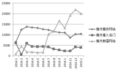 根据国家互联网应急中心发布的报告,仅在2015年1月,中国境内被篡改网站就多达10455个,其中被篡改政府网站数量为376个;被植入后门的网站数量为3976个,其中政府网站237个。