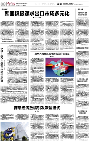 “美国加征关税等贸易保护主义措施对韩国经济的冲击是很明显的,因此,韩国希望与周边国家的市场保持一种稳定的关系,进而扩大市场的范围,从而抵消来自美国方面的不确定性产生的不利影响。”刘向东分析说,韩国作为新兴的工业化国家,在推行自由贸易等方面进度比较快,韩国也提出一些新的对外战略,目的在于不能太过依赖某一个国家的市场。同时,韩国也不希望完全依赖中国市场,因此,在东南亚、俄罗斯及其他周边国家积极拓展市场。由于和这些国家距离较近,贸易成本较低,因此在推动整个区域贸易往来方面——无论是多边还是双边,韩国在亚洲地区都是领先的,这也是韩国一个既定战略。此外,国际贸易形势有利于韩国产品出口,韩国经济的支柱是半导体等产品,这些产品的出口对韩国经济发展有带动作用。