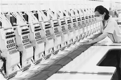 今年以来,山东省青岛市即墨区统筹疫情防控与经济社会发展,加大助企纾困力度,落实减税降费、资金扶持、稳企用工、转型升级等各项惠企政策,鼓励外贸企业加速科技创新,提升自主品牌竞争力。该区外贸生产企业近日订单充足,工人加紧赶制海外订单。图为即墨区即发集团有限公司的绣花工人正在生产出口产品。