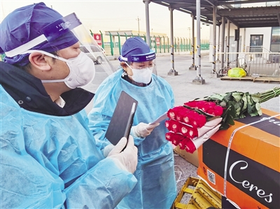 近日,位于北京首都国际机场的户外查验场,首都机场海关查验处的关员正在加急对一批刚刚到达的荷兰进口鲜花进行验放,以减少低温对鲜花的影响。他们一丝不苟地对照查看鲜花的品名、数量、原产地等信息。